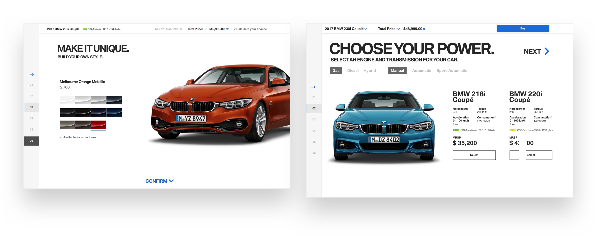 Online car configurator website for BMW latest range – for both mobile and desktop.